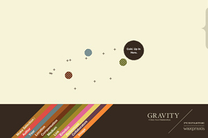Gravity. A story about relationships. Presented at FITC, a design and technology conference in Toronto, in the Spring of 2005 with the legendary Branden Hall. Gravity (beta) is unreleased.